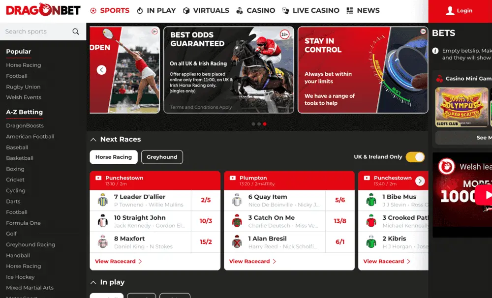 We think the best promotion DragonBet offer is their “Best Odds Guaranteed” on UK and Irish racing, but they also do even specific boosts and promotions too.
